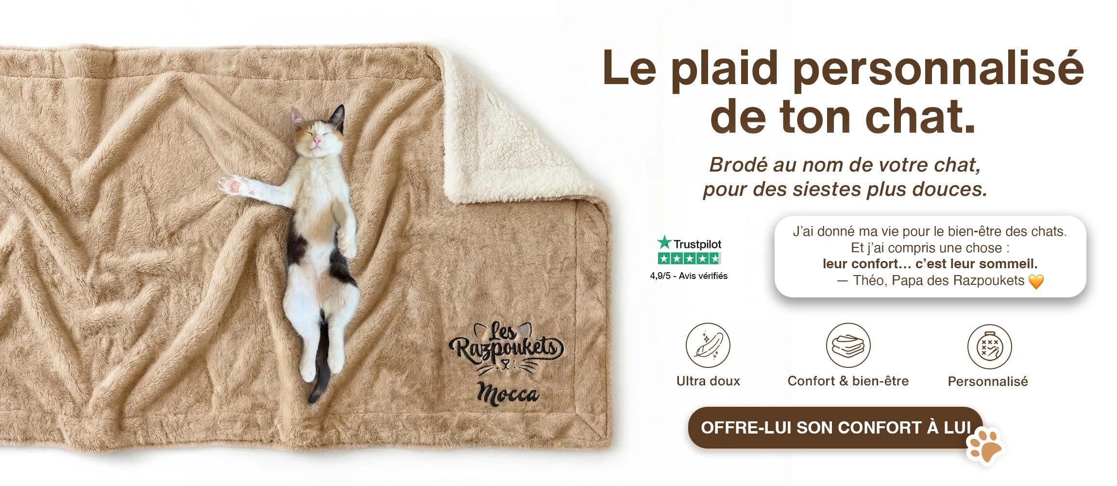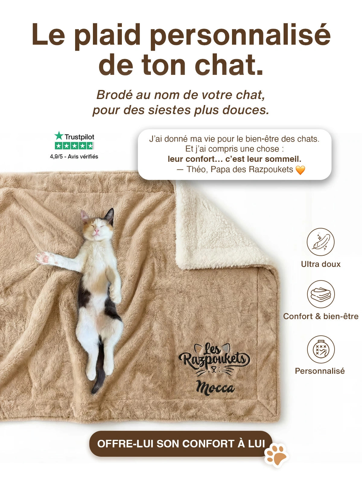 Plus de 30.000 humains de chats ont déjà adopté un plaid Razpoukets®.